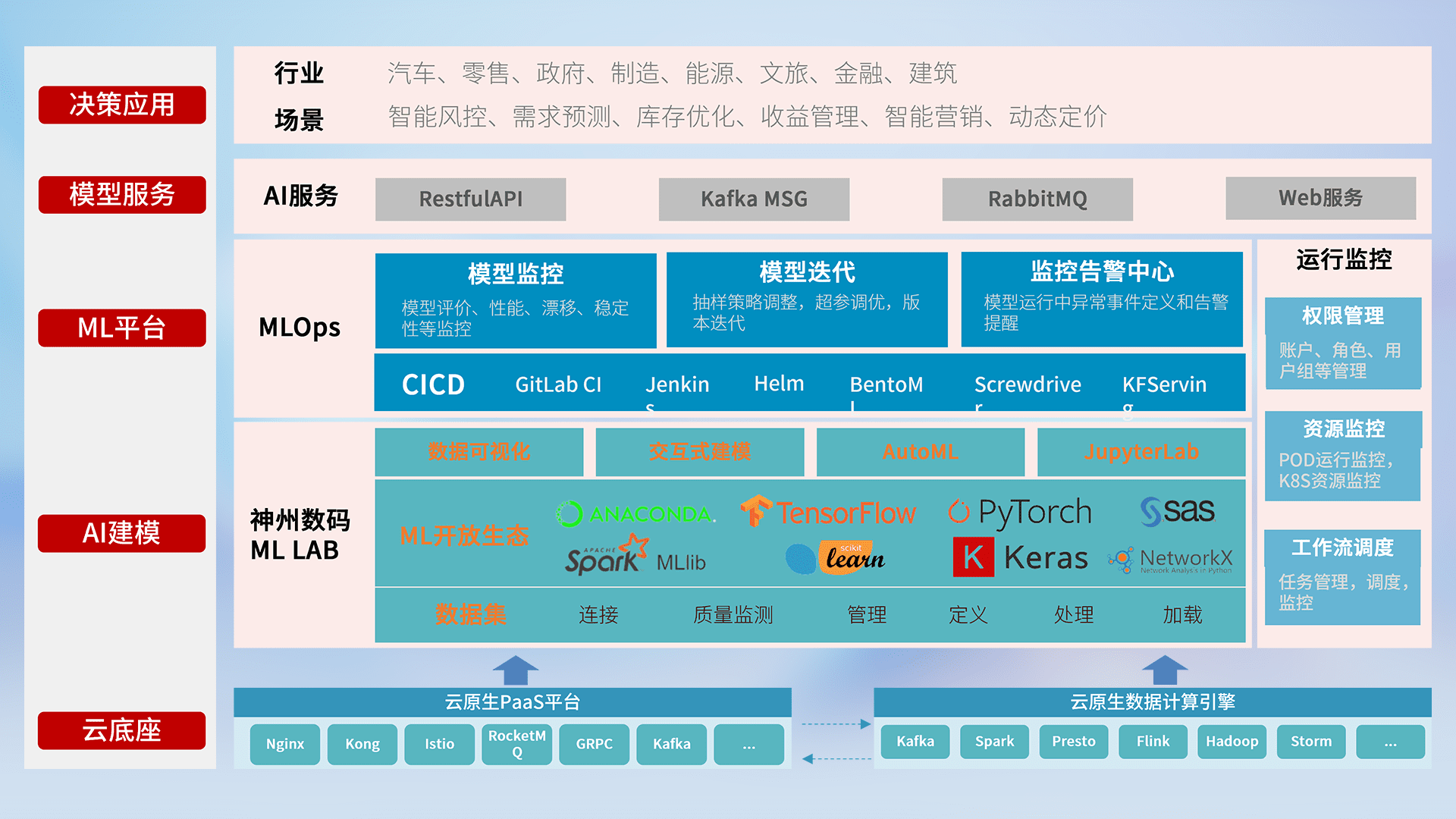 数据+模型双引擎驱动,,面向智能服务场景,,快速灵活利用AI技术,,支持业务决策,,助力企业智能化转型破局。。。